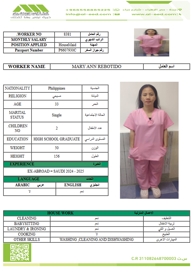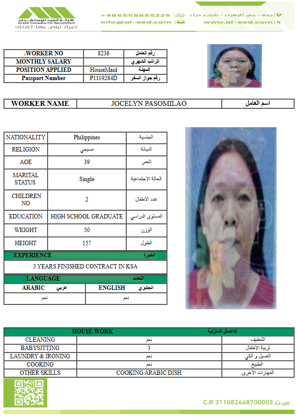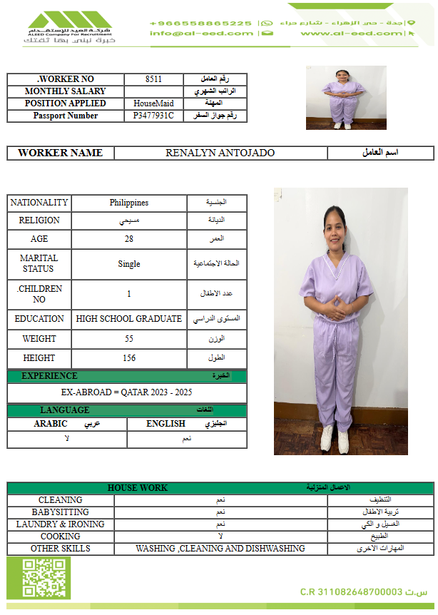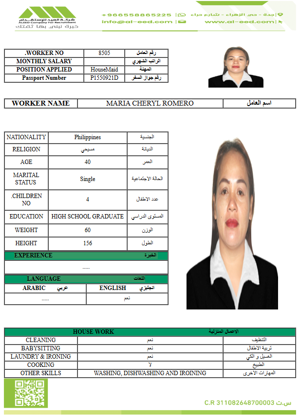 معروفة ( معينه بالاسم ) مدة الاستقدام في خلال ٣٠ يوم الي 60 يوم الراتب 1500 ريال