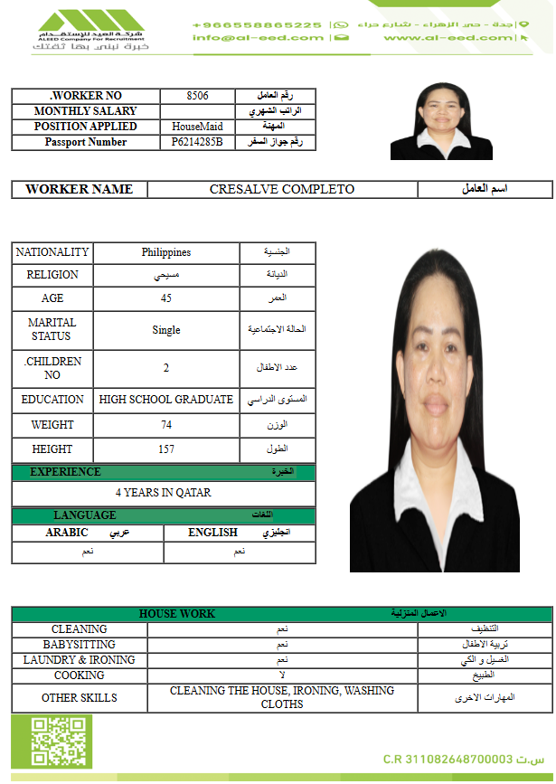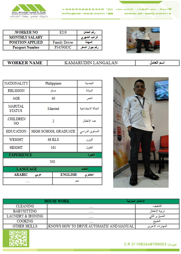 مدة الاستقدام في خلال ٣٠ يوم الي 60 يوم الراتب يبدأ من 900 ريال