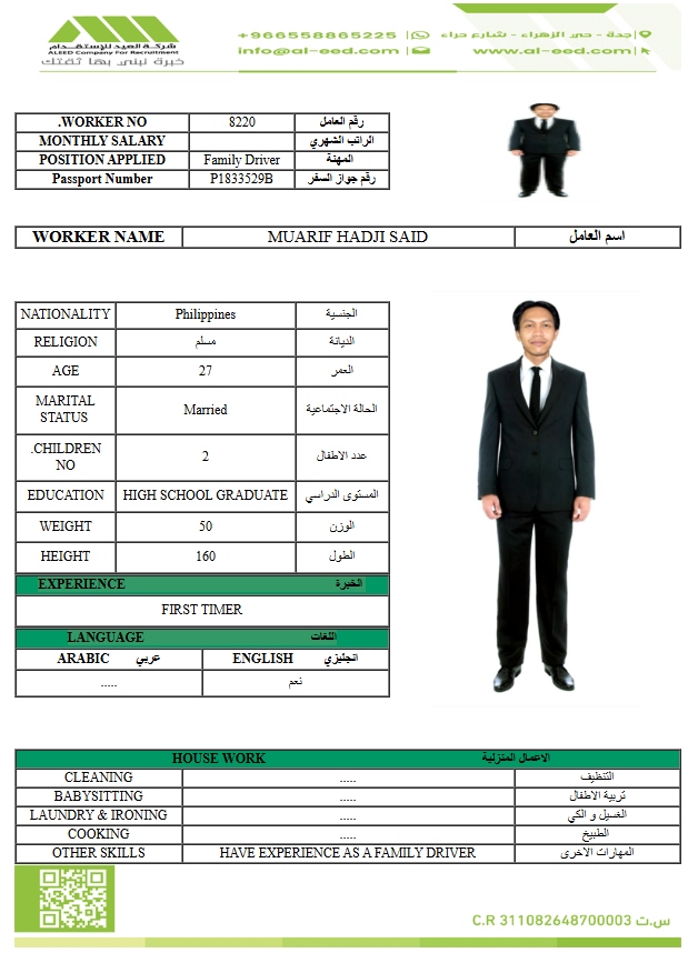 مدة الاستقدام في خلال ٣٠ يوم الي 60 يوم رواتب تبداء من 1500 ريال