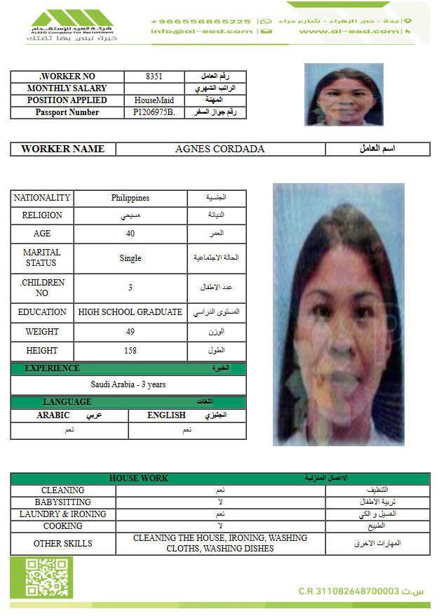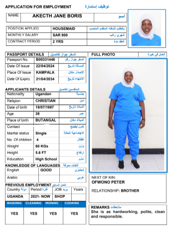 مدة الاستقدام في خلال ٣٠ يوم الي 60 يوم الراتب 900 ريال