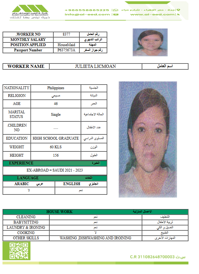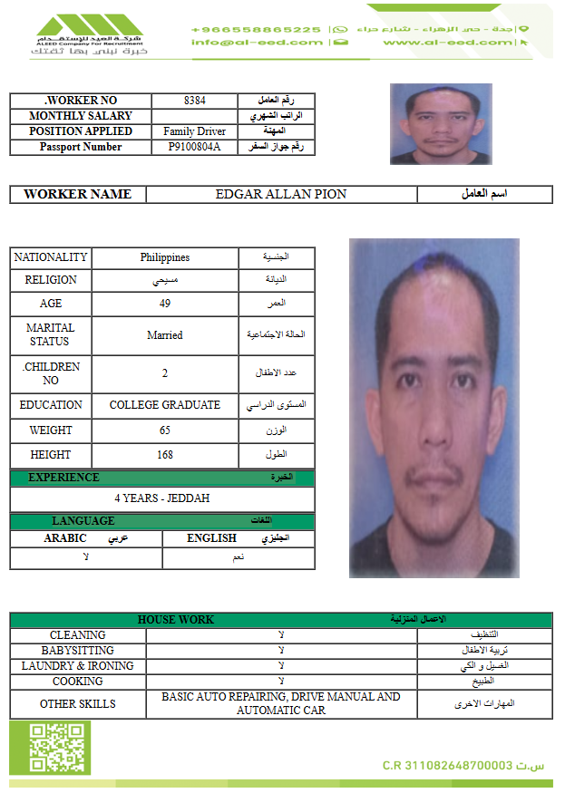 مدة الاستقدام في خلال ٣٠ يوم الي 60 يوم الراتب 1200 ريال