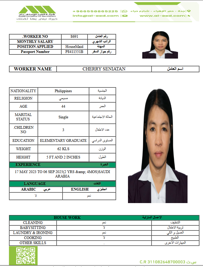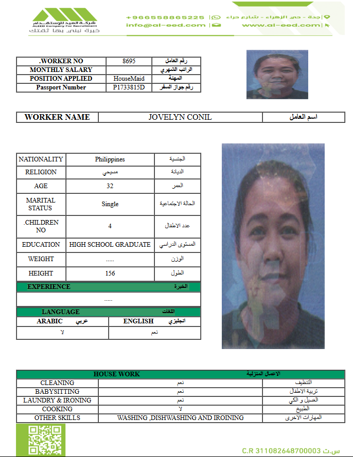 معروفة ( معينه بالاسم ) مدة الاستقدام في خلال ٣٠ يوم الي 60 يوم الراتب 1500 ريال