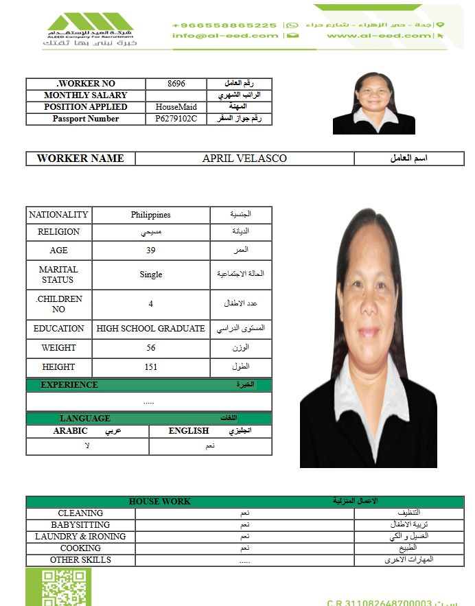 مدة الاستقدام في خلال ٣٠ يوم الي 60 يوم الراتب 1200 ريال
