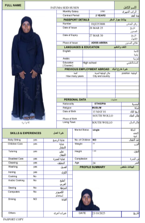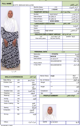 نوع الخدمة نوع الخدمة استقدام تأجير نقل خدمات الجنسية الجنسية الفلبين الهند مصر كينيا اثيوبيا بروندي بنغلاديش أوغندا أوغندا معروفة باكستان الفلبين معروفة اندونيسيا المهنة عاملة منزلية سائق خاص عاملة عناية زوجين ( عامله منزليه وسائق ) الديانة مسلم غير مسلم الخبرة سبق العمل لم يسبق العمل العمر العمر 15 16 17 18 19 20 21 22 23 24 25 26 27 28 29 30 31 32 33 34 35 36 37 38 39 40 41 42 43 44 45 46 47 48 49 50 51 52 53 54 55 56 57 58 59 60 الحالة العائلية الحالة العائلية اعزب متزوج مطلق ارمل اللغة اللغة العربية العربية العربية بنجالي نبالي فلبيني امهرية سواحلي عربي + لغتها الاساسية اندونيسي اوغندي بروندي الوزن الوزن 40 41 42 43 44 45 46 47 48 49 50 51 52 53 54 55 56 57 58 59 60 61 62 63 64 65 66 67 68 69 70 71 72 73 74 75 76 77 78 79 80 81 82 83 84 85 86 87 88 89 90 91 92 93 94 95 96 97 98 99 100 الطول الطول 100 101 102 103 104 105 106 107 108 109 110 111 112 113 114 115 116 117 118 119 120 121 122 123 124 125 126 127 128 129 130 131 132 133 134 135 136 137 138 139 140 141 142 143 144 145 146 147 148 149 150 151 152 153 154 155 156 157 158 159 160 161 162 163 164 165 166 167 168 169 170 171 172 173 174 175 176 177 178 179 180 181 182 183 184 185 186 187 188 189 190 الطلبات الطلبات التنظيف الغسيل الكوي الطبيخ العربي عناية الأطفال عناية كبار السن عناية الرضيع تعليم الأطفال التنظيف - الغسيل - الكوي التنظيف - الغسيل - الكوي- رغبة في تعلم الطبخ التنظيف - الغسيل - الكوي- رغبة في العناية بالاطفال بحث مسح بحث متقدم NESRIYA SADIK HUSSEN اثيوبيا العمر 27 الخبرة لم يسبق العمل الديانة مسلم رقم الملف EQ1128733 حجز العاملة NEIMA JEMAL ASSEN اثيوبيا العمر 27 الخبرة لم يسبق العمل الديانة مسلم رقم الملف EQ1486574 حجز العاملة MEREMA HUSSEN YESUF اثيوبيا العمر 26 الخبرة لم يسبق العمل الديانة مسلم رقم الملف EQ1971317 حجز العاملة FATUMA SEID HUSEN اثيوبيا العمر 24 الخبرة لم يسبق العمل الديانة مسلم رقم الملف EQ2253808 حجز العاملة YIMER SEADAAHMED اثيوبيا العمر 21 الخبرة لم يسبق العمل الديانة مسلم رقم الملف EP8177617 حجز العاملة SEADA FENTAW SEID اثيوبيا العمر 27 الخبرة لم يسبق العمل الديانة مسلم رقم الملف EQ1538016 حجز العاملة RUKIYA SEID ALI اثيوبيا العمر 27 الخبرة لم يسبق العمل الديانة مسلم رقم الملف EQ1753435 حجز العاملة MEDINA HUSSEN MEHAMMED اثيوبيا العمر 21 الخبرة لم يسبق العمل الديانة مسلم رقم الملف EQ1236569 حجز العاملة MAHLET GETACHEW ADDISE اثيوبيا العمر 30 الخبرة لم يسبق العمل الديانة غير مسلم رقم الملف EP9077260 حجز العاملة KUFTU BEDASO KELACHO اثيوبيا العمر 28 الخبرة لم يسبق العمل الديانة مسلم رقم الملف EQ2530367 حجز العاملة 10 11 12 13 14 15 16 17 18