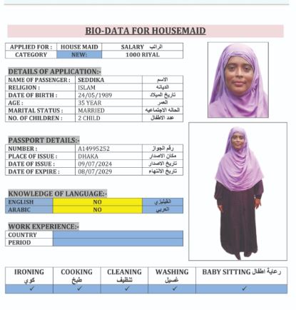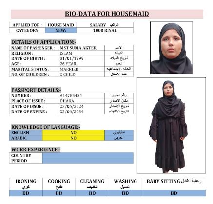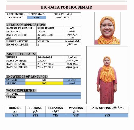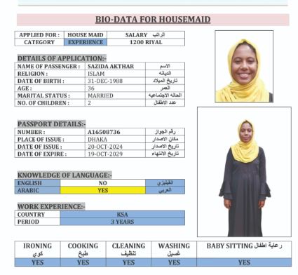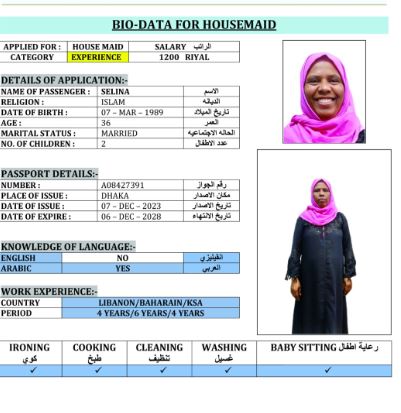 نوع الخدمة نوع الخدمة استقدام تأجير نقل خدمات الجنسية الجنسية الفلبين الهند مصر كينيا اثيوبيا بروندي بنغلاديش أوغندا أوغندا معروفة باكستان الفلبين معروفة اندونيسيا المهنة عاملة منزلية سائق خاص عاملة عناية زوجين ( عامله منزليه وسائق ) الديانة مسلم غير مسلم الخبرة سبق العمل لم يسبق العمل العمر العمر 15 16 17 18 19 20 21 22 23 24 25 26 27 28 29 30 31 32 33 34 35 36 37 38 39 40 41 42 43 44 45 46 47 48 49 50 51 52 53 54 55 56 57 58 59 60 الحالة العائلية الحالة العائلية اعزب متزوج مطلق ارمل اللغة اللغة العربية العربية العربية بنجالي نبالي فلبيني امهرية سواحلي عربي + لغتها الاساسية اندونيسي اوغندي بروندي الوزن الوزن 40 41 42 43 44 45 46 47 48 49 50 51 52 53 54 55 56 57 58 59 60 61 62 63 64 65 66 67 68 69 70 71 72 73 74 75 76 77 78 79 80 81 82 83 84 85 86 87 88 89 90 91 92 93 94 95 96 97 98 99 100 الطول الطول 100 101 102 103 104 105 106 107 108 109 110 111 112 113 114 115 116 117 118 119 120 121 122 123 124 125 126 127 128 129 130 131 132 133 134 135 136 137 138 139 140 141 142 143 144 145 146 147 148 149 150 151 152 153 154 155 156 157 158 159 160 161 162 163 164 165 166 167 168 169 170 171 172 173 174 175 176 177 178 179 180 181 182 183 184 185 186 187 188 189 190 الطلبات الطلبات التنظيف الغسيل الكوي الطبيخ العربي عناية الأطفال عناية كبار السن عناية الرضيع تعليم الأطفال التنظيف - الغسيل - الكوي التنظيف - الغسيل - الكوي- رغبة في تعلم الطبخ التنظيف - الغسيل - الكوي- رغبة في العناية بالاطفال بحث مسح بحث متقدم RUMI RANI بنغلاديش العمر 28 الخبرة لم يسبق العمل الديانة غير مسلم رقم الملف A16502155 حجز العاملة RUNI BEGUM بنغلاديش العمر 36 الخبرة لم يسبق العمل الديانة مسلم رقم الملف A04061624 حجز العاملة SAZIDA AKTHAR بنغلاديش العمر 36 الخبرة لم يسبق العمل الديانة مسلم رقم الملف A16508736 حجز العاملة SEDDIKA بنغلاديش العمر 35 الخبرة لم يسبق العمل الديانة مسلم رقم الملف A14995252 حجز العاملة SELINA بنغلاديش العمر 36 الخبرة لم يسبق العمل الديانة مسلم رقم الملف A08427391 حجز العاملة MST TASLIMA BEGUM بنغلاديش العمر 36 الخبرة لم يسبق العمل الديانة مسلم رقم الملف A17023133 حجز العاملة MST SUMA AKTER بنغلاديش العمر 26 الخبرة لم يسبق العمل الديانة مسلم رقم الملف A14785434 حجز العاملة MST SABANA KHATUN بنغلاديش العمر 36 الخبرة لم يسبق العمل الديانة مسلم رقم الملف A03837286 حجز العاملة SHEEMA RANI بنغلاديش العمر 38 الخبرة لم يسبق العمل الديانة غير مسلم رقم الملف EH0853981 حجز العاملة MST FARJUNA BIBI بنغلاديش العمر 35 الخبرة لم يسبق العمل الديانة مسلم رقم الملف A03238809 حجز العاملة 2 3 4 5 6 7 8