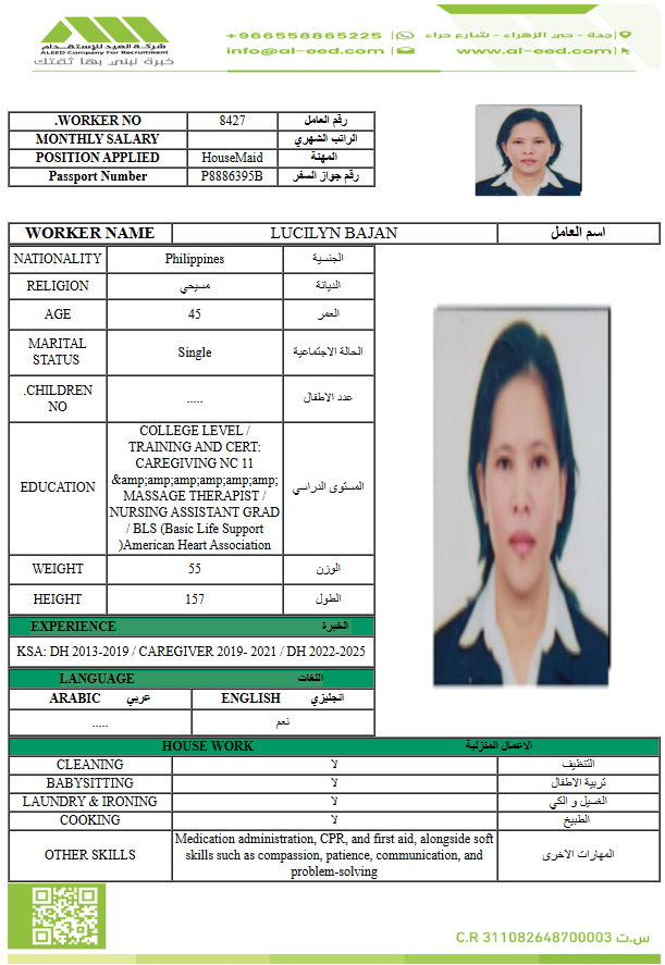 1. حجز العاملة