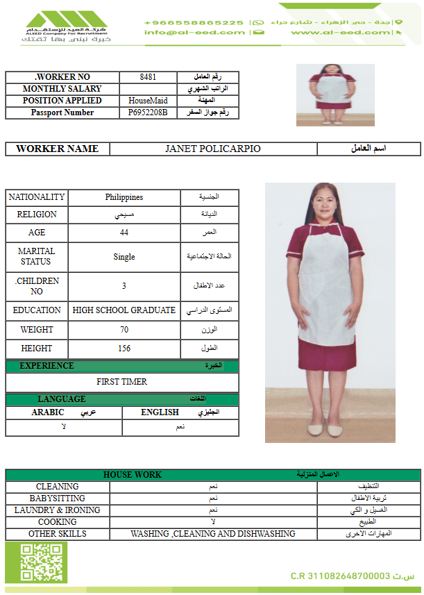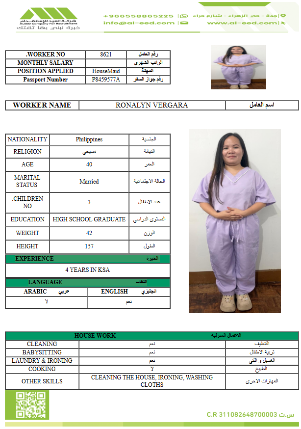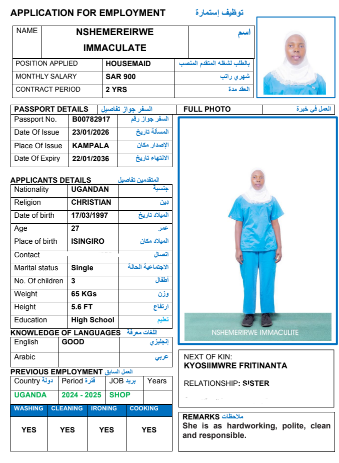 مدة الاستقدام في خلال ٣٠ يوم الي 60 يوم الراتب 900 ريال