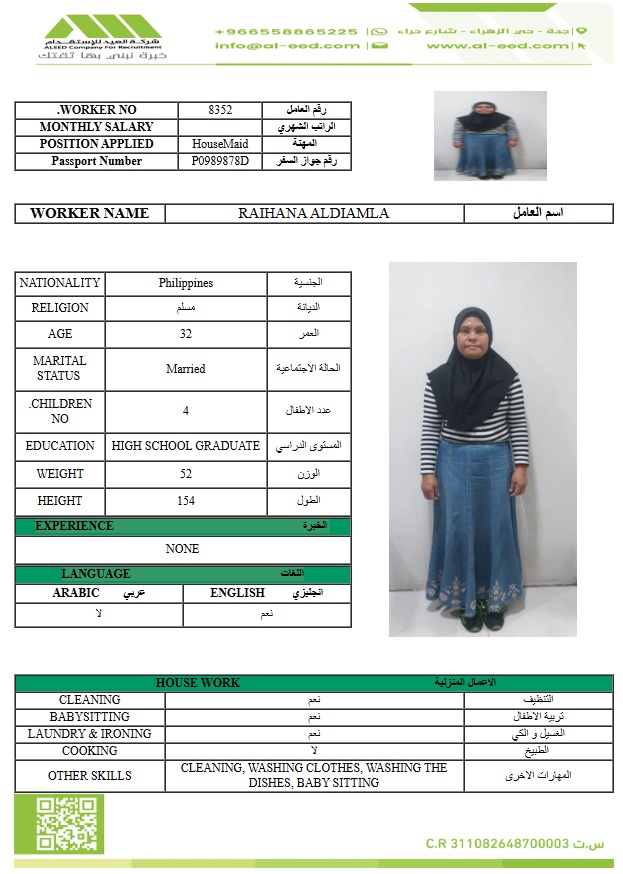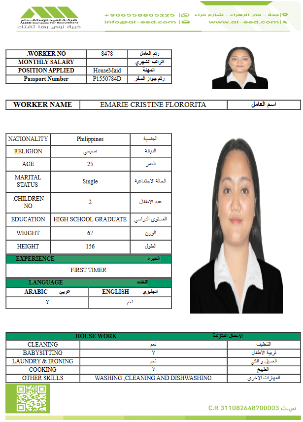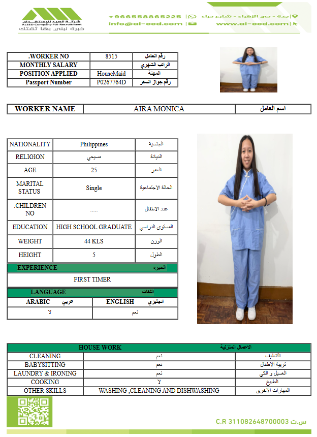 معروفة ( معينه بالاسم ) مدة الاستقدام في خلال ٣٠ يوم الي 60 يوم الراتب 1500 ريال