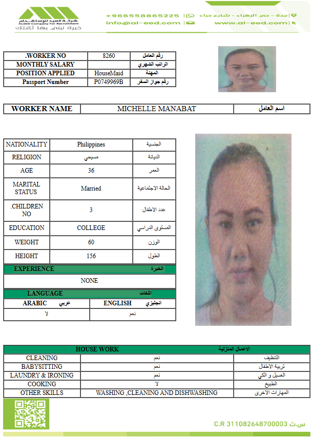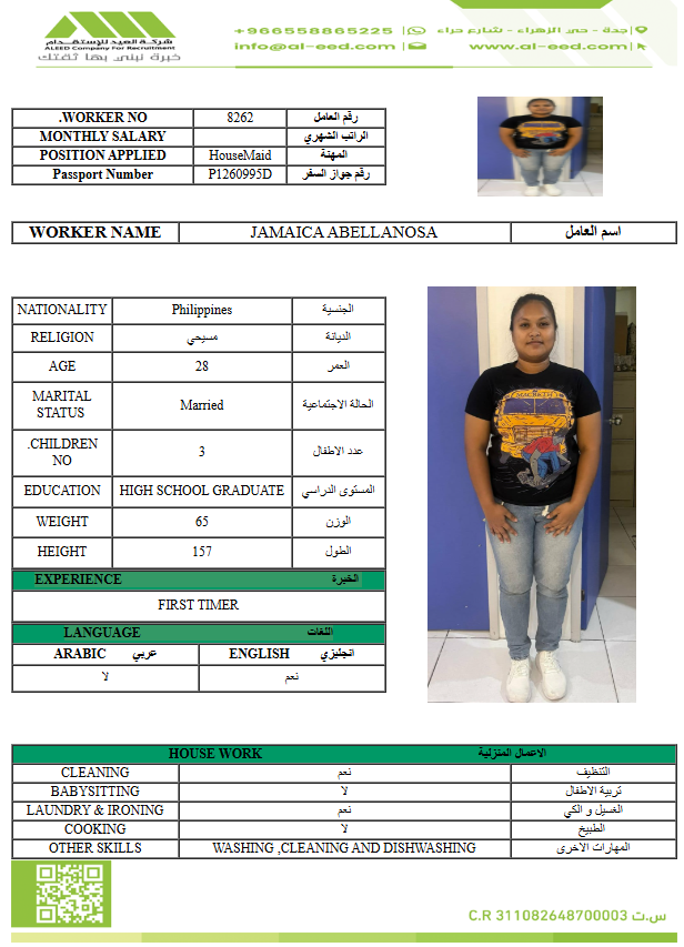 معروفة ( معينه بالاسم ) مدة الاستقدام في خلال ٣٠ يوم الي 60 يوم الراتب 1500 ريال