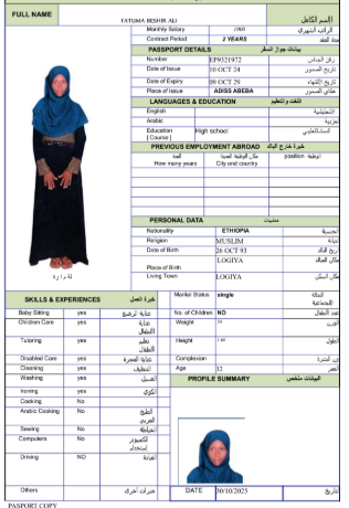 نوع الخدمة نوع الخدمة استقدام تأجير نقل خدمات الجنسية الجنسية الفلبين الهند مصر كينيا اثيوبيا بروندي بنغلاديش أوغندا أوغندا معروفة باكستان الفلبين معروفة اندونيسيا المهنة عاملة منزلية سائق خاص عاملة عناية زوجين ( عامله منزليه وسائق ) الديانة مسلم غير مسلم الخبرة سبق العمل لم يسبق العمل العمر العمر 15 16 17 18 19 20 21 22 23 24 25 26 27 28 29 30 31 32 33 34 35 36 37 38 39 40 41 42 43 44 45 46 47 48 49 50 51 52 53 54 55 56 57 58 59 60 الحالة العائلية الحالة العائلية اعزب متزوج مطلق ارمل اللغة اللغة العربية العربية العربية بنجالي نبالي فلبيني امهرية سواحلي عربي + لغتها الاساسية اندونيسي اوغندي بروندي الوزن الوزن 40 41 42 43 44 45 46 47 48 49 50 51 52 53 54 55 56 57 58 59 60 61 62 63 64 65 66 67 68 69 70 71 72 73 74 75 76 77 78 79 80 81 82 83 84 85 86 87 88 89 90 91 92 93 94 95 96 97 98 99 100 الطول الطول 100 101 102 103 104 105 106 107 108 109 110 111 112 113 114 115 116 117 118 119 120 121 122 123 124 125 126 127 128 129 130 131 132 133 134 135 136 137 138 139 140 141 142 143 144 145 146 147 148 149 150 151 152 153 154 155 156 157 158 159 160 161 162 163 164 165 166 167 168 169 170 171 172 173 174 175 176 177 178 179 180 181 182 183 184 185 186 187 188 189 190 الطلبات الطلبات التنظيف الغسيل الكوي الطبيخ العربي عناية الأطفال عناية كبار السن عناية الرضيع تعليم الأطفال التنظيف - الغسيل - الكوي التنظيف - الغسيل - الكوي- رغبة في تعلم الطبخ التنظيف - الغسيل - الكوي- رغبة في العناية بالاطفال بحث مسح بحث متقدم MUHAMMED RADIYAAHMED اثيوبيا العمر 22 الخبرة لم يسبق العمل الديانة مسلم رقم الملف EP8854852 حجز العاملة RODELIN RUSIANA الفلبين العمر 40 الخبرة لم يسبق العمل الديانة غير مسلم رقم الملف P0691840D حجز العاملة NURIYA GELETO SHIFA اثيوبيا العمر 25 الخبرة لم يسبق العمل الديانة مسلم رقم الملف EQ2577702 حجز العاملة NESIBA SULE IBRO اثيوبيا العمر 25 الخبرة لم يسبق العمل الديانة مسلم رقم الملف EQ2865620 حجز العاملة MEKA NIWSE TILAHUN اثيوبيا العمر 25 الخبرة لم يسبق العمل الديانة مسلم رقم الملف EQ1744219 حجز العاملة HAYAT MOHAMMED MEKONNEN اثيوبيا العمر 25 الخبرة لم يسبق العمل الديانة مسلم رقم الملف EQ2160108 حجز العاملة HAYAT HUSSEN MAMA اثيوبيا العمر 22 الخبرة لم يسبق العمل الديانة مسلم رقم الملف EQ2572167 حجز العاملة HABIBA MOHAMMED MEKONNEN اثيوبيا العمر 26 الخبرة لم يسبق العمل الديانة مسلم رقم الملف EQ1526767 حجز العاملة FEYINE KUFA KUSA اثيوبيا العمر 27 الخبرة لم يسبق العمل الديانة مسلم رقم الملف EP7857351 حجز العاملة FATUMA BESHIR ALI اثيوبيا العمر 32 الخبرة لم يسبق العمل الديانة مسلم رقم الملف EP9321972 حجز العاملة 8 9 10 11 12 13 14 15 16
