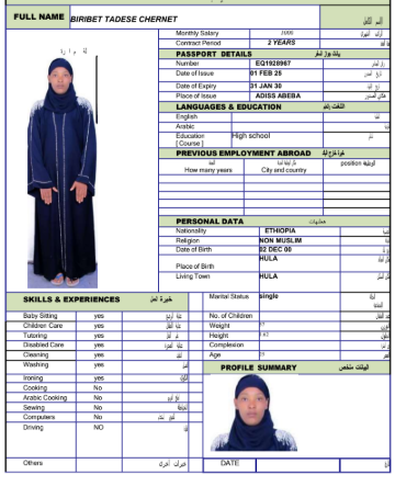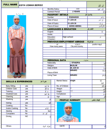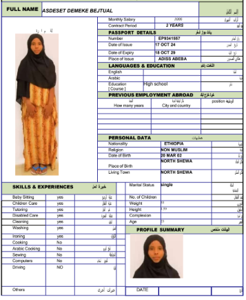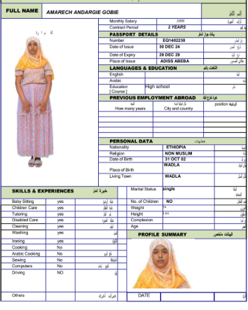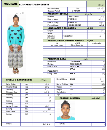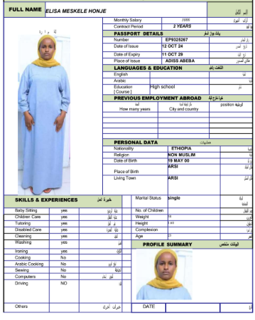 نوع الخدمة نوع الخدمة استقدام تأجير نقل خدمات الجنسية الجنسية الفلبين الهند مصر كينيا اثيوبيا بروندي بنغلاديش أوغندا أوغندا معروفة باكستان الفلبين معروفة اندونيسيا المهنة عاملة منزلية سائق خاص عاملة عناية زوجين ( عامله منزليه وسائق ) الديانة مسلم غير مسلم الخبرة سبق العمل لم يسبق العمل العمر العمر 15 16 17 18 19 20 21 22 23 24 25 26 27 28 29 30 31 32 33 34 35 36 37 38 39 40 41 42 43 44 45 46 47 48 49 50 51 52 53 54 55 56 57 58 59 60 الحالة العائلية الحالة العائلية اعزب متزوج مطلق ارمل اللغة اللغة العربية العربية العربية بنجالي نبالي فلبيني امهرية سواحلي عربي + لغتها الاساسية اندونيسي اوغندي بروندي الوزن الوزن 40 41 42 43 44 45 46 47 48 49 50 51 52 53 54 55 56 57 58 59 60 61 62 63 64 65 66 67 68 69 70 71 72 73 74 75 76 77 78 79 80 81 82 83 84 85 86 87 88 89 90 91 92 93 94 95 96 97 98 99 100 الطول الطول 100 101 102 103 104 105 106 107 108 109 110 111 112 113 114 115 116 117 118 119 120 121 122 123 124 125 126 127 128 129 130 131 132 133 134 135 136 137 138 139 140 141 142 143 144 145 146 147 148 149 150 151 152 153 154 155 156 157 158 159 160 161 162 163 164 165 166 167 168 169 170 171 172 173 174 175 176 177 178 179 180 181 182 183 184 185 186 187 188 189 190 الطلبات الطلبات التنظيف الغسيل الكوي الطبيخ العربي عناية الأطفال عناية كبار السن عناية الرضيع تعليم الأطفال التنظيف - الغسيل - الكوي التنظيف - الغسيل - الكوي- رغبة في تعلم الطبخ التنظيف - الغسيل - الكوي- رغبة في العناية بالاطفال بحث مسح بحث متقدم ELISA MESKELE HONJE اثيوبيا العمر 25 الخبرة لم يسبق العمل الديانة غير مسلم رقم الملف EP9325267 حجز العاملة BOSENA MELESE MULU اثيوبيا العمر 25 الخبرة لم يسبق العمل الديانة غير مسلم رقم الملف EQ2452783 حجز العاملة BIZUAYEHU YALEW GESESE اثيوبيا العمر 26 الخبرة لم يسبق العمل الديانة غير مسلم رقم الملف EQ1724842 حجز العاملة BIRIBET TADESE CHERNET اثيوبيا العمر 25 الخبرة لم يسبق العمل الديانة غير مسلم رقم الملف EQ1928967 حجز العاملة BILCHA SADIK DELU اثيوبيا العمر 25 الخبرة لم يسبق العمل الديانة مسلم رقم الملف EQ1618576 حجز العاملة ASIYA USMAN BERISO اثيوبيا العمر 23 الخبرة لم يسبق العمل الديانة مسلم رقم الملف EQ2840520 حجز العاملة ASDESET DEMEKE BEJTUAL اثيوبيا العمر 23 الخبرة لم يسبق العمل الديانة غير مسلم رقم الملف EP9341557 حجز العاملة AMINA ZENU ABAMATI اثيوبيا العمر 27 الخبرة لم يسبق العمل الديانة مسلم رقم الملف EP7219427 حجز العاملة AMARECH ANDARGIE GOBIE اثيوبيا العمر 23 الخبرة لم يسبق العمل الديانة غير مسلم رقم الملف EQ1402238 حجز العاملة ALIMET GEZAHAGN WUSSEN اثيوبيا العمر 23 الخبرة لم يسبق العمل الديانة مسلم رقم الملف EQ1683134 حجز العاملة 24 25 26 27 28 29 30 31 32