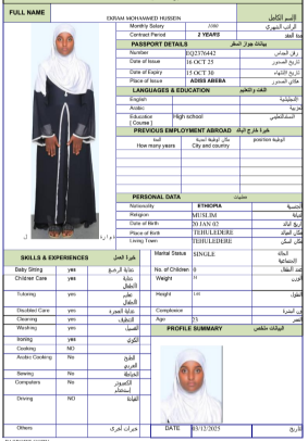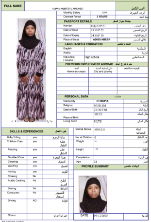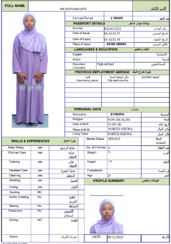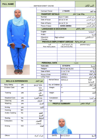 نوع الخدمة نوع الخدمة استقدام تأجير نقل خدمات الجنسية الجنسية الفلبين الهند مصر كينيا اثيوبيا بروندي بنغلاديش أوغندا أوغندا معروفة باكستان الفلبين معروفة اندونيسيا المهنة عاملة منزلية سائق خاص عاملة عناية زوجين ( عامله منزليه وسائق ) الديانة مسلم غير مسلم الخبرة سبق العمل لم يسبق العمل العمر العمر 15 16 17 18 19 20 21 22 23 24 25 26 27 28 29 30 31 32 33 34 35 36 37 38 39 40 41 42 43 44 45 46 47 48 49 50 51 52 53 54 55 56 57 58 59 60 الحالة العائلية الحالة العائلية اعزب متزوج مطلق ارمل اللغة اللغة العربية العربية العربية بنجالي نبالي فلبيني امهرية سواحلي عربي + لغتها الاساسية اندونيسي اوغندي بروندي الوزن الوزن 40 41 42 43 44 45 46 47 48 49 50 51 52 53 54 55 56 57 58 59 60 61 62 63 64 65 66 67 68 69 70 71 72 73 74 75 76 77 78 79 80 81 82 83 84 85 86 87 88 89 90 91 92 93 94 95 96 97 98 99 100 الطول الطول 100 101 102 103 104 105 106 107 108 109 110 111 112 113 114 115 116 117 118 119 120 121 122 123 124 125 126 127 128 129 130 131 132 133 134 135 136 137 138 139 140 141 142 143 144 145 146 147 148 149 150 151 152 153 154 155 156 157 158 159 160 161 162 163 164 165 166 167 168 169 170 171 172 173 174 175 176 177 178 179 180 181 182 183 184 185 186 187 188 189 190 الطلبات الطلبات التنظيف الغسيل الكوي الطبيخ العربي عناية الأطفال عناية كبار السن عناية الرضيع تعليم الأطفال التنظيف - الغسيل - الكوي التنظيف - الغسيل - الكوي- رغبة في تعلم الطبخ التنظيف - الغسيل - الكوي- رغبة في العناية بالاطفال بحث مسح بحث متقدم LESAN BERGENI YALESO اثيوبيا العمر 26 الخبرة لم يسبق العمل الديانة غير مسلم رقم الملف EQ1406835 حجز العاملة JEMILA YESUF MOHAMMED اثيوبيا العمر 35 الخبرة لم يسبق العمل الديانة مسلم رقم الملف EP8756495 حجز العاملة HAYAT SEID AHMED اثيوبيا العمر 26 الخبرة لم يسبق العمل الديانة مسلم رقم الملف EQ2224610 حجز العاملة EKRAM MOHAMMED HUSSEIN اثيوبيا العمر 23 الخبرة لم يسبق العمل الديانة مسلم رقم الملف EQ2376442 حجز العاملة AYE KAFTAMU LETA اثيوبيا العمر 25 الخبرة لم يسبق العمل الديانة غير مسلم رقم الملف EQ1631224 حجز العاملة AMEN AKAKO BUNA اثيوبيا العمر 25 الخبرة لم يسبق العمل الديانة غير مسلم رقم الملف EQ1007922 حجز العاملة ALIMA MUSTEFA AHEMED اثيوبيا العمر 24 الخبرة لم يسبق العمل الديانة مسلم رقم الملف EQ2278577 حجز العاملة ABAYNESH DAWIT DACHO اثيوبيا العمر 26 الخبرة لم يسبق العمل الديانة غير مسلم رقم الملف EQ1271008 حجز العاملة WUBITU SEID BANTA اثيوبيا العمر 28 الخبرة لم يسبق العمل الديانة غير مسلم رقم الملف EP8872147 حجز العاملة KEMSO HAJI GELCHU اثيوبيا العمر 26 الخبرة لم يسبق العمل الديانة مسلم رقم الملف EQ2605004 حجز العاملة 2 3 4 5 6 7 8 9 10
