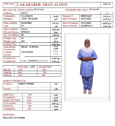 نوع الخدمة نوع الخدمة استقدام تأجير نقل خدمات الجنسية الجنسية الفلبين الهند مصر كينيا اثيوبيا بروندي بنغلاديش أوغندا أوغندا معروفة باكستان الفلبين معروفة اندونيسيا المهنة عاملة منزلية سائق خاص عاملة عناية زوجين ( عامله منزليه وسائق ) الديانة مسلم غير مسلم الخبرة سبق العمل لم يسبق العمل العمر العمر 15 16 17 18 19 20 21 22 23 24 25 26 27 28 29 30 31 32 33 34 35 36 37 38 39 40 41 42 43 44 45 46 47 48 49 50 51 52 53 54 55 56 57 58 59 60 الحالة العائلية الحالة العائلية اعزب متزوج مطلق ارمل اللغة اللغة العربية العربية العربية بنجالي نبالي فلبيني امهرية سواحلي عربي + لغتها الاساسية اندونيسي اوغندي بروندي الوزن الوزن 40 41 42 43 44 45 46 47 48 49 50 51 52 53 54 55 56 57 58 59 60 61 62 63 64 65 66 67 68 69 70 71 72 73 74 75 76 77 78 79 80 81 82 83 84 85 86 87 88 89 90 91 92 93 94 95 96 97 98 99 100 الطول الطول 100 101 102 103 104 105 106 107 108 109 110 111 112 113 114 115 116 117 118 119 120 121 122 123 124 125 126 127 128 129 130 131 132 133 134 135 136 137 138 139 140 141 142 143 144 145 146 147 148 149 150 151 152 153 154 155 156 157 158 159 160 161 162 163 164 165 166 167 168 169 170 171 172 173 174 175 176 177 178 179 180 181 182 183 184 185 186 187 188 189 190 الطلبات الطلبات التنظيف الغسيل الكوي الطبيخ العربي عناية الأطفال عناية كبار السن عناية الرضيع تعليم الأطفال التنظيف - الغسيل - الكوي التنظيف - الغسيل - الكوي- رغبة في تعلم الطبخ التنظيف - الغسيل - الكوي- رغبة في العناية بالاطفال بحث مسح بحث متقدم NAKKAZI MARCY أوغندا العمر 31 الخبرة لم يسبق العمل الديانة غير مسلم رقم الملف B00785957 حجز العاملة KAYEGI MARY أوغندا العمر 24 الخبرة لم يسبق العمل الديانة غير مسلم رقم الملف B00782573 حجز العاملة NAKAYIMA NASHIBA أوغندا العمر 22 الخبرة لم يسبق العمل الديانة مسلم رقم الملف B0081578 حجز العاملة NAKAYENGA MARIAM أوغندا العمر 35 الخبرة لم يسبق العمل الديانة مسلم رقم الملف B00658085 حجز العاملة NAHYAHA SCOVIA أوغندا العمر 28 الخبرة لم يسبق العمل الديانة غير مسلم رقم الملف A00807346 حجز العاملة NABUKENYA SHAMIRAH أوغندا العمر 26 الخبرة لم يسبق العمل الديانة مسلم رقم الملف A00739704 حجز العاملة NABAGEGA MALIZA أوغندا العمر 31 الخبرة لم يسبق العمل الديانة غير مسلم رقم الملف B00602542 حجز العاملة NABACHWA CARLOLINE أوغندا العمر 36 الخبرة لم يسبق العمل الديانة غير مسلم رقم الملف A00570709 حجز العاملة MUTESI MWASITI أوغندا العمر 37 الخبرة لم يسبق العمل الديانة مسلم رقم الملف A00077637 حجز العاملة LAKARABER SHAN ALOYO أوغندا العمر 22 الخبرة لم يسبق العمل الديانة غير مسلم رقم الملف B00211639 حجز العاملة 1 2 3 4