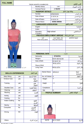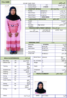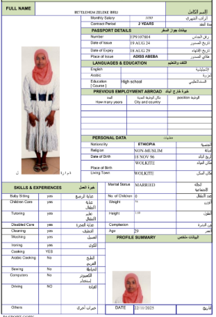 نوع الخدمة نوع الخدمة استقدام تأجير نقل خدمات الجنسية الجنسية الفلبين الهند مصر كينيا اثيوبيا بروندي بنغلاديش أوغندا أوغندا معروفة باكستان الفلبين معروفة اندونيسيا المهنة عاملة منزلية سائق خاص عاملة عناية زوجين ( عامله منزليه وسائق ) الديانة مسلم غير مسلم الخبرة سبق العمل لم يسبق العمل العمر العمر 15 16 17 18 19 20 21 22 23 24 25 26 27 28 29 30 31 32 33 34 35 36 37 38 39 40 41 42 43 44 45 46 47 48 49 50 51 52 53 54 55 56 57 58 59 60 الحالة العائلية الحالة العائلية اعزب متزوج مطلق ارمل اللغة اللغة العربية العربية العربية بنجالي نبالي فلبيني امهرية سواحلي عربي + لغتها الاساسية اندونيسي اوغندي بروندي الوزن الوزن 40 41 42 43 44 45 46 47 48 49 50 51 52 53 54 55 56 57 58 59 60 61 62 63 64 65 66 67 68 69 70 71 72 73 74 75 76 77 78 79 80 81 82 83 84 85 86 87 88 89 90 91 92 93 94 95 96 97 98 99 100 الطول الطول 100 101 102 103 104 105 106 107 108 109 110 111 112 113 114 115 116 117 118 119 120 121 122 123 124 125 126 127 128 129 130 131 132 133 134 135 136 137 138 139 140 141 142 143 144 145 146 147 148 149 150 151 152 153 154 155 156 157 158 159 160 161 162 163 164 165 166 167 168 169 170 171 172 173 174 175 176 177 178 179 180 181 182 183 184 185 186 187 188 189 190 الطلبات الطلبات التنظيف الغسيل الكوي الطبيخ العربي عناية الأطفال عناية كبار السن عناية الرضيع تعليم الأطفال التنظيف - الغسيل - الكوي التنظيف - الغسيل - الكوي- رغبة في تعلم الطبخ التنظيف - الغسيل - الكوي- رغبة في العناية بالاطفال بحث مسح بحث متقدم TELILE DIRIBA DUGUSA اثيوبيا العمر 24 الخبرة لم يسبق العمل الديانة غير مسلم رقم الملف EQ1493879 حجز العاملة BETELEHEM ZELEKE BIRU اثيوبيا العمر 29 الخبرة لم يسبق العمل الديانة غير مسلم رقم الملف EP9107804 حجز العاملة BELISE WAGAR KALBESA اثيوبيا العمر 22 الخبرة لم يسبق العمل الديانة غير مسلم رقم الملف EQ2194867 حجز العاملة FATUMA HANUR YIBRE اثيوبيا العمر 23 الخبرة لم يسبق العمل الديانة مسلم رقم الملف EQ2430382 حجز العاملة ZINET ENDRIS OUMER اثيوبيا العمر 24 الخبرة لم يسبق العمل الديانة مسلم رقم الملف EP8559596 حجز العاملة ZEYNIYA MOHAMMED TAJU اثيوبيا العمر 22 الخبرة لم يسبق العمل الديانة مسلم رقم الملف EQ2840033 حجز العاملة ZEHABE YIMER YESUF اثيوبيا العمر 38 الخبرة لم يسبق العمل الديانة مسلم رقم الملف EP9202318 حجز العاملة YEWBDAR MAMO MOLLA اثيوبيا العمر 25 الخبرة لم يسبق العمل الديانة غير مسلم رقم الملف EQ1614003 حجز العاملة WUDESEW JENBERU BRHANU اثيوبيا العمر 26 الخبرة لم يسبق العمل الديانة غير مسلم رقم الملف EQ2354766 حجز العاملة TSION MANETU HAMBACHO اثيوبيا العمر 21 الخبرة لم يسبق العمل الديانة غير مسلم رقم الملف EP8850494 حجز العاملة 1 2 3 4 5 6 7