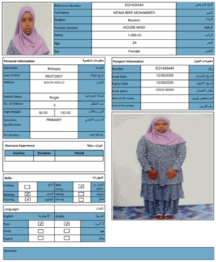 1. حجز العاملة