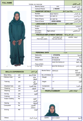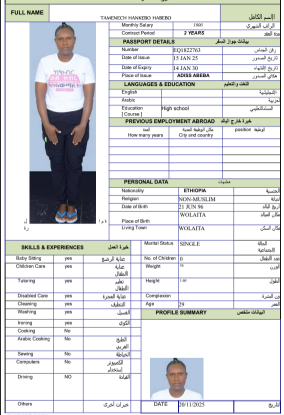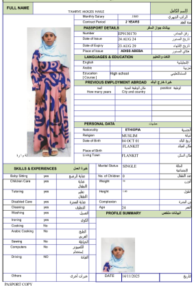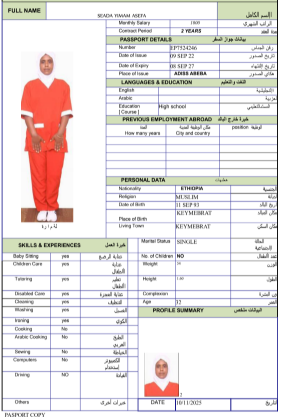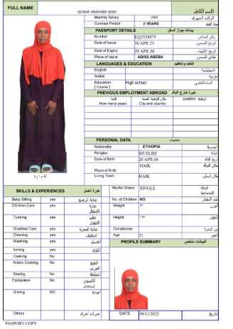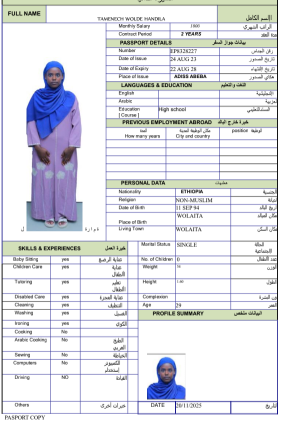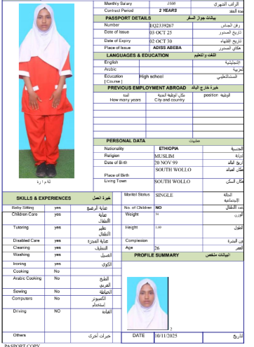 نوع الخدمة نوع الخدمة استقدام تأجير نقل خدمات الجنسية الجنسية الفلبين الهند مصر كينيا اثيوبيا بروندي بنغلاديش أوغندا أوغندا معروفة باكستان الفلبين معروفة اندونيسيا المهنة عاملة منزلية سائق خاص عاملة عناية زوجين ( عامله منزليه وسائق ) الديانة مسلم غير مسلم الخبرة سبق العمل لم يسبق العمل العمر العمر 15 16 17 18 19 20 21 22 23 24 25 26 27 28 29 30 31 32 33 34 35 36 37 38 39 40 41 42 43 44 45 46 47 48 49 50 51 52 53 54 55 56 57 58 59 60 الحالة العائلية الحالة العائلية اعزب متزوج مطلق ارمل اللغة اللغة العربية العربية العربية بنجالي نبالي فلبيني امهرية سواحلي عربي + لغتها الاساسية اندونيسي اوغندي بروندي الوزن الوزن 40 41 42 43 44 45 46 47 48 49 50 51 52 53 54 55 56 57 58 59 60 61 62 63 64 65 66 67 68 69 70 71 72 73 74 75 76 77 78 79 80 81 82 83 84 85 86 87 88 89 90 91 92 93 94 95 96 97 98 99 100 الطول الطول 100 101 102 103 104 105 106 107 108 109 110 111 112 113 114 115 116 117 118 119 120 121 122 123 124 125 126 127 128 129 130 131 132 133 134 135 136 137 138 139 140 141 142 143 144 145 146 147 148 149 150 151 152 153 154 155 156 157 158 159 160 161 162 163 164 165 166 167 168 169 170 171 172 173 174 175 176 177 178 179 180 181 182 183 184 185 186 187 188 189 190 الطلبات الطلبات التنظيف الغسيل الكوي الطبيخ العربي عناية الأطفال عناية كبار السن عناية الرضيع تعليم الأطفال التنظيف - الغسيل - الكوي التنظيف - الغسيل - الكوي- رغبة في تعلم الطبخ التنظيف - الغسيل - الكوي- رغبة في العناية بالاطفال بحث مسح بحث متقدم TOYBA ALI WAGAW اثيوبيا العمر 25 الخبرة لم يسبق العمل الديانة مسلم رقم الملف EQ1746531 حجز العاملة TIGIST TESFE MESEGE اثيوبيا العمر 24 الخبرة لم يسبق العمل الديانة غير مسلم رقم الملف EP8973177 حجز العاملة TIGIST KABATO KACHARO اثيوبيا العمر 23 الخبرة لم يسبق العمل الديانة غير مسلم رقم الملف EQ1368301 حجز العاملة TAMRYE MOGES HAILE اثيوبيا العمر 24 الخبرة لم يسبق العمل الديانة مسلم رقم الملف EP9130170 حجز العاملة TAMENECH WOLDE HANDILA اثيوبيا العمر 29 الخبرة لم يسبق العمل الديانة غير مسلم رقم الملف EP8328227 حجز العاملة TAMENECH HANKEBO HABEBO اثيوبيا العمر 29 الخبرة لم يسبق العمل الديانة غير مسلم رقم الملف EQ1822763 حجز العاملة SEMIRA FETENE ADEM اثيوبيا العمر 26 الخبرة لم يسبق العمل الديانة مسلم رقم الملف EQ2339267 حجز العاملة SELAM KEBEDE TEKESTE اثيوبيا العمر 23 الخبرة لم يسبق العمل الديانة مسلم رقم الملف EQ1492678 حجز العاملة SEADA YIMAM ASEFA اثيوبيا العمر 32 الخبرة لم يسبق العمل الديانة مسلم رقم الملف EP7524246 حجز العاملة SEADA MUHABA SEID اثيوبيا العمر 21 الخبرة لم يسبق العمل الديانة مسلم رقم الملف EQ2528875 حجز العاملة 1 2 3 4 5 6 7 8