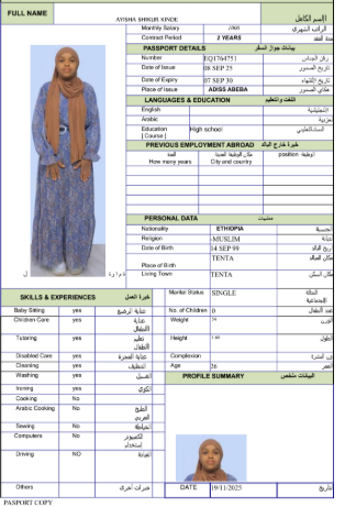 نوع الخدمة نوع الخدمة استقدام تأجير نقل خدمات الجنسية الجنسية الفلبين الهند مصر كينيا اثيوبيا بروندي بنغلاديش أوغندا أوغندا معروفة باكستان الفلبين معروفة اندونيسيا المهنة عاملة منزلية سائق خاص عاملة عناية زوجين ( عامله منزليه وسائق ) الديانة مسلم غير مسلم الخبرة سبق العمل لم يسبق العمل العمر العمر 15 16 17 18 19 20 21 22 23 24 25 26 27 28 29 30 31 32 33 34 35 36 37 38 39 40 41 42 43 44 45 46 47 48 49 50 51 52 53 54 55 56 57 58 59 60 الحالة العائلية الحالة العائلية اعزب متزوج مطلق ارمل اللغة اللغة العربية العربية العربية بنجالي نبالي فلبيني امهرية سواحلي عربي + لغتها الاساسية اندونيسي اوغندي بروندي الوزن الوزن 40 41 42 43 44 45 46 47 48 49 50 51 52 53 54 55 56 57 58 59 60 61 62 63 64 65 66 67 68 69 70 71 72 73 74 75 76 77 78 79 80 81 82 83 84 85 86 87 88 89 90 91 92 93 94 95 96 97 98 99 100 الطول الطول 100 101 102 103 104 105 106 107 108 109 110 111 112 113 114 115 116 117 118 119 120 121 122 123 124 125 126 127 128 129 130 131 132 133 134 135 136 137 138 139 140 141 142 143 144 145 146 147 148 149 150 151 152 153 154 155 156 157 158 159 160 161 162 163 164 165 166 167 168 169 170 171 172 173 174 175 176 177 178 179 180 181 182 183 184 185 186 187 188 189 190 الطلبات الطلبات التنظيف الغسيل الكوي الطبيخ العربي عناية الأطفال عناية كبار السن عناية الرضيع تعليم الأطفال التنظيف - الغسيل - الكوي التنظيف - الغسيل - الكوي- رغبة في تعلم الطبخ التنظيف - الغسيل - الكوي- رغبة في العناية بالاطفال بحث مسح بحث متقدم MARESHET SISAY ALI اثيوبيا العمر 25 الخبرة لم يسبق العمل الديانة مسلم رقم الملف EQ2626498 حجز العاملة BONTU CHEMEDA ABERA اثيوبيا العمر 25 الخبرة لم يسبق العمل الديانة غير مسلم رقم الملف EQ2400930 حجز العاملة AYISHA SHIKUR KINDE اثيوبيا العمر 26 الخبرة لم يسبق العمل الديانة مسلم رقم الملف EQ1764751 حجز العاملة FAITH MAKENA NYAGA كينيا العمر 35 الخبرة سبق العمل الديانة غير مسلم رقم الملف BK150982 حجز العاملة EVERLYN KWAMBOKA NYAMAO كينيا العمر 34 الخبرة سبق العمل الديانة غير مسلم رقم الملف BK757120 حجز العاملة DAMARIS OYOO JECTON كينيا العمر 29 الخبرة سبق العمل الديانة غير مسلم رقم الملف AK0620525 حجز العاملة CATHERINE KAMENE KIOKO كينيا العمر 41 الخبرة سبق العمل الديانة غير مسلم رقم الملف BK1045161 حجز العاملة DIVINAH KERUBO MOGAKA كينيا العمر 37 الخبرة سبق العمل الديانة غير مسلم رقم الملف BK294821 حجز العاملة NALUYIGA ZAMZAM أوغندا العمر 20 الخبرة لم يسبق العمل الديانة مسلم رقم الملف B00389431 حجز العاملة NAIGWE AMINA أوغندا العمر 38 الخبرة لم يسبق العمل الديانة مسلم رقم الملف A01071028 حجز العاملة 2 3 4 5 6 7 8 9 10